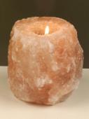 der Salzstein mit Teelicht sorgt für behagliches Licht in unserer Sauna